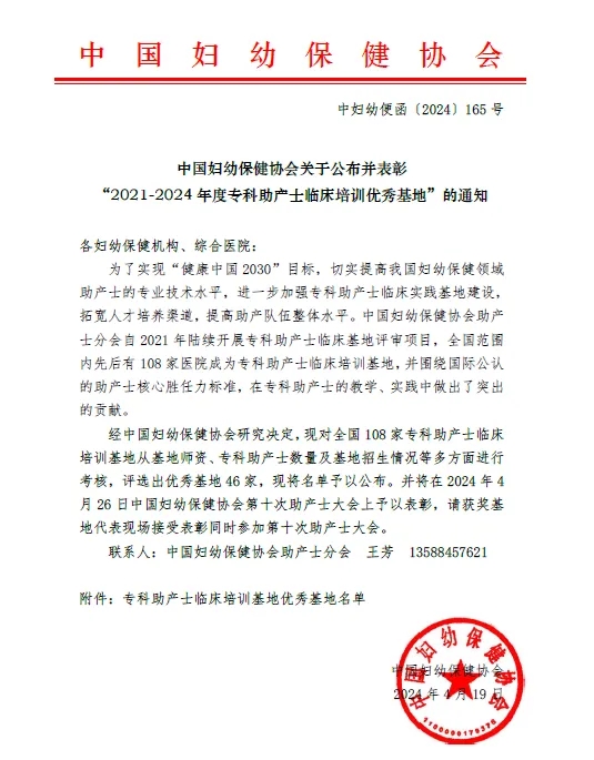 我院荣获“中国妇幼保健协会专科助产士临床培训优秀基地”,并成为2025年第十一次全国助产士大会协办单位,是中国妇幼保健协会对我省助产专科建设以及我院专科助产士培训取得成绩的肯定,必将带动我省助产专科向更高、更远的目标不断前进。