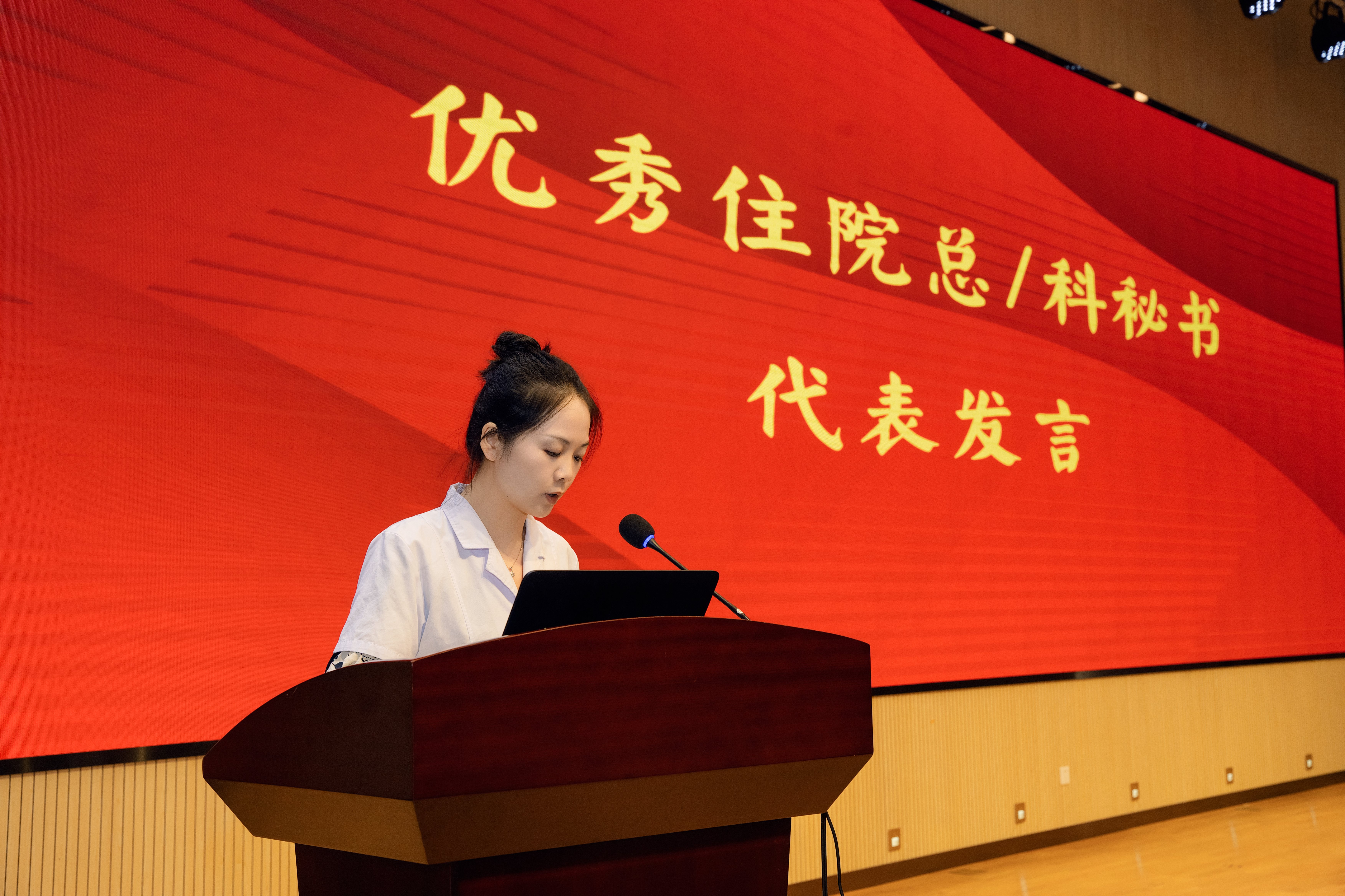 获奖代表优秀医生程吉、优秀住院总医师周燕、优秀科技工作者汪银分别作交流发言。