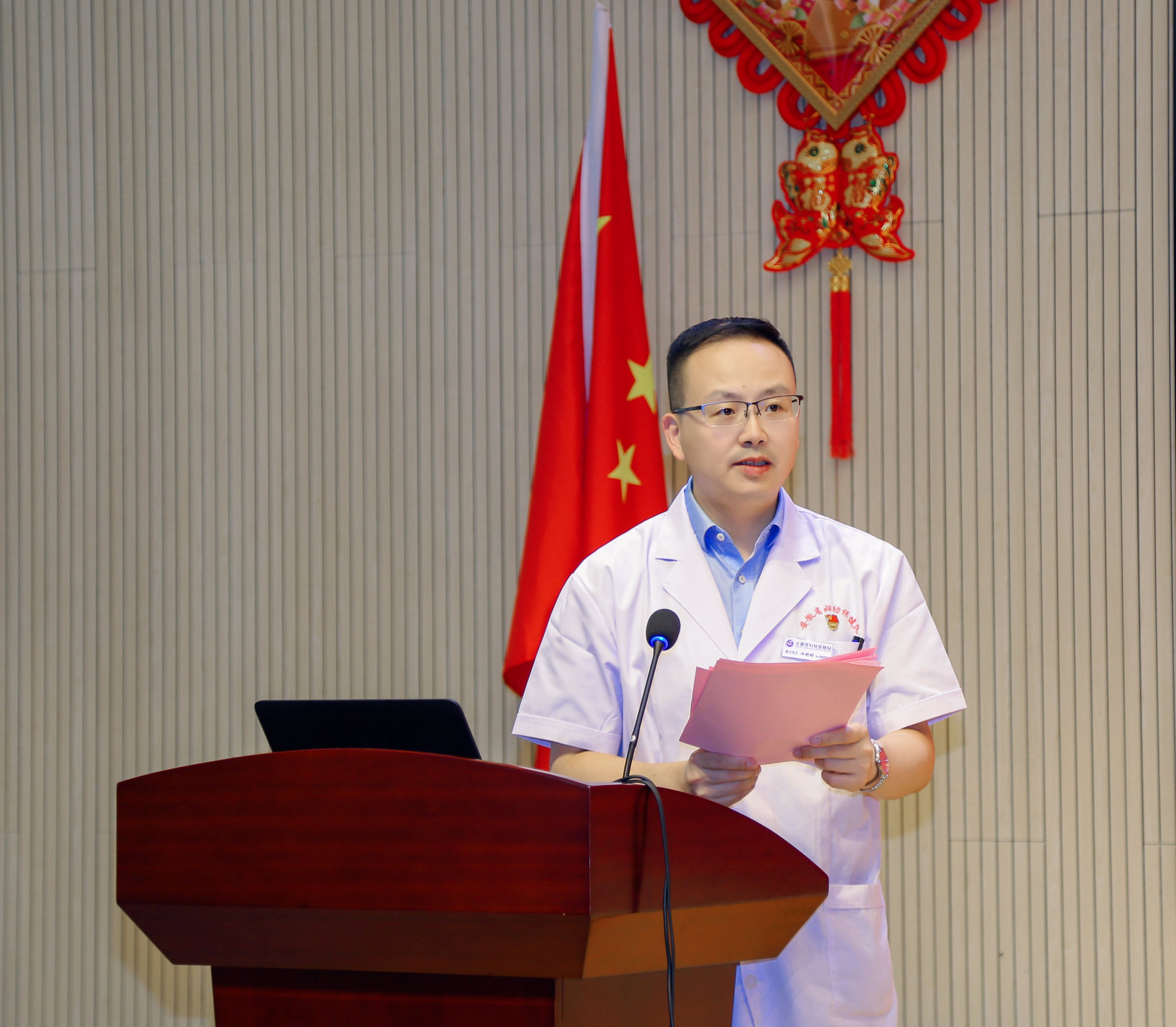 合肥市卫生健康委党委委员、副主任孙冰宾代表合肥市卫健委向医院全体医务人员致以节日的问候和崇高的敬意。她提出几点要求:以“学习贯彻习近平新时代中国特色社会主义思想”为主线,强化政治引领,保持全面从严治党管党的生命力;以“学科建设”为指引,深化创新突破,激发优势学科的竞争力;以病人为中心,改善就医体验,形成高质量发展的助推力。让我们以新时期医疗卫生人的崇高使命谱写我们的时代华章,筑牢护佑人民生命健康安全的钢铁长城。