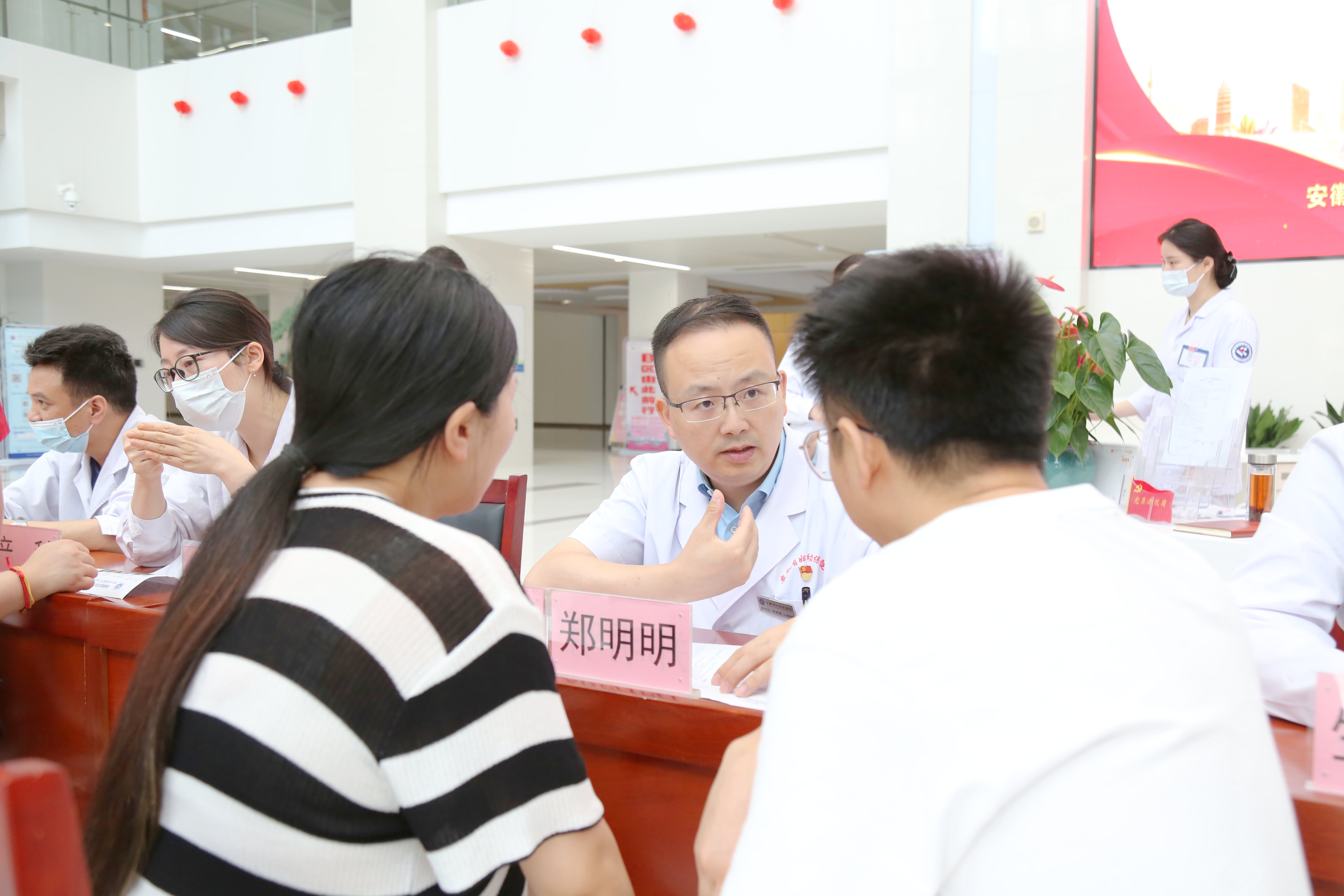 我院党委书记唐智国(泌尿外科和生殖男科专家),党委副书记、执行院长郑明明(母胎医学专家),副院长胡海利(儿童保健专家)及产科、妇科、生殖科、儿科、内科、外科、儿童骨科等专家参加了义诊,为现场患者解疑答惑,提供健康咨询。