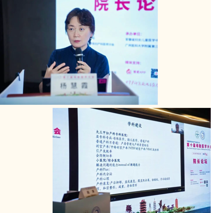 主旨演讲环节,国家卫生健康委妇幼健康中心战略发展规划处(政策研究室)负责人朱兆芳,广州医科大学附属第三医院妇产科主任医师、广州妇产科研究所所长陈敦金,山东省妇幼保健院党委副书记、院长王谢桐,安徽省妇女儿童医学中心(合肥市妇幼保健院)党委书记唐智国,北京大学第一医院妇产科主任杨慧霞,上海市东方医院妇产科主任段涛等分别作专题讲座,内容涵盖妇幼保健机构高质量发展、母胎医学发展:AI是近期希望、基础研究和技术创新赋能母胎学科发展、低生育率背景下的生育友好医院建设、中国女性全生命周期的健康实践、低生育水平下产科的转型与发展等,为全国妇幼同仁带来了一场妇幼健康发展的饕餮盛宴。