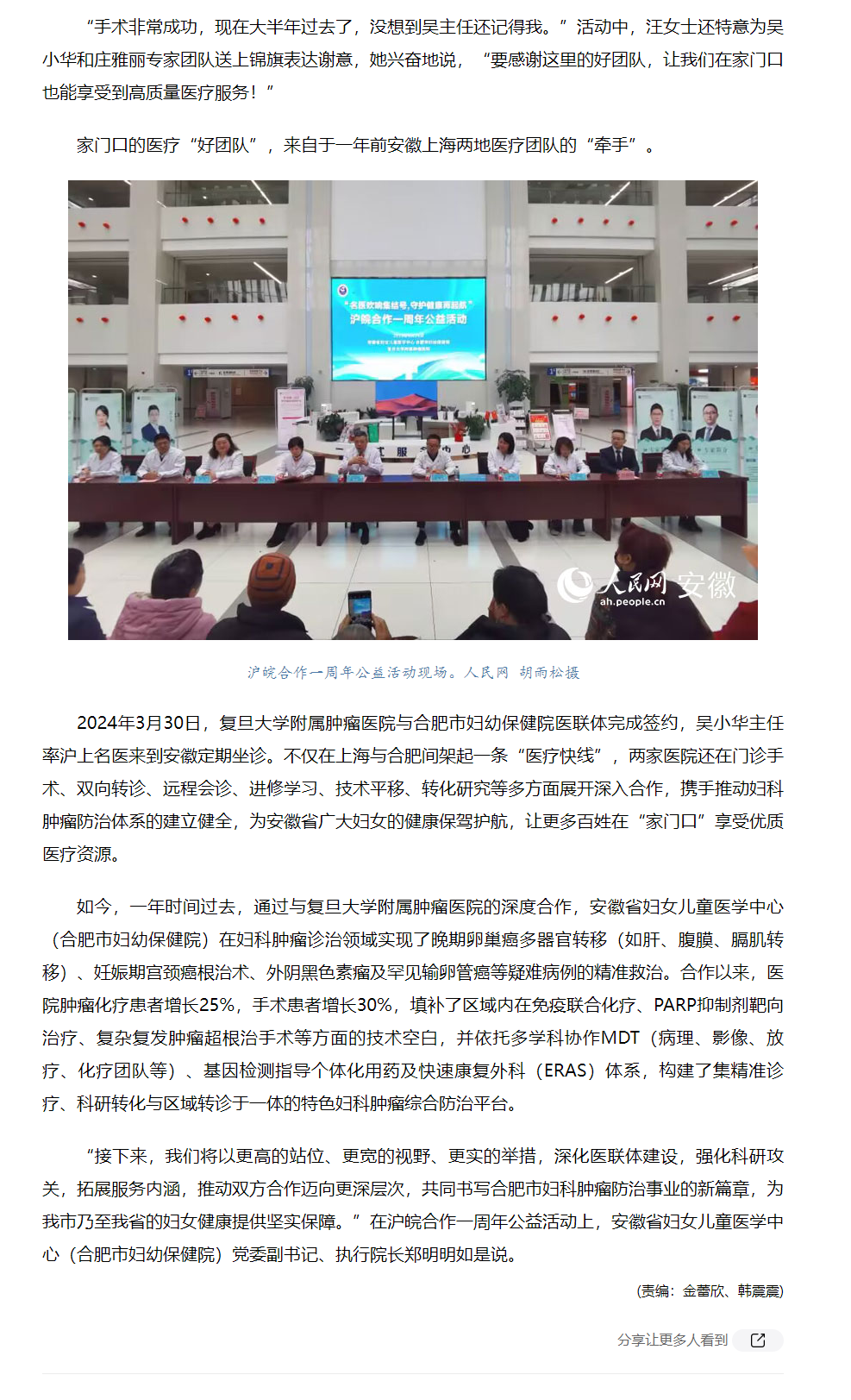 【媒体视角】名医手牵手,沪皖共创家门口的好医疗