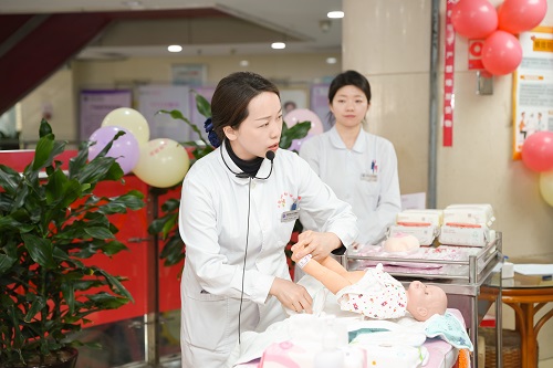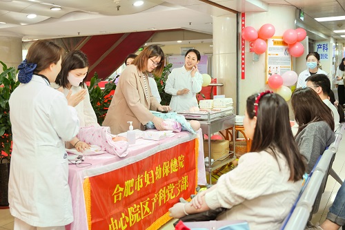 4月7日上午中心院区产科党支部率先在门诊开展科普活动。活动伊始,支部党员开展了母乳喂养知识宣教以及新生儿护理示范指导。准爸爸准妈妈们全神贯注,不仅深入领悟了母乳喂养对于新生儿成长发育的关键意义,还踊跃参与互动。