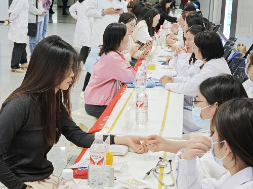不少市民在中西医结合内科排起了长队,体验刮痧、耳穴压豆等中医特色疗法。此次义诊共服务群众114人,有意向来院就医者26人,测血糖116人、测血压65人,把脉问诊30人,耳穴压丸13人。