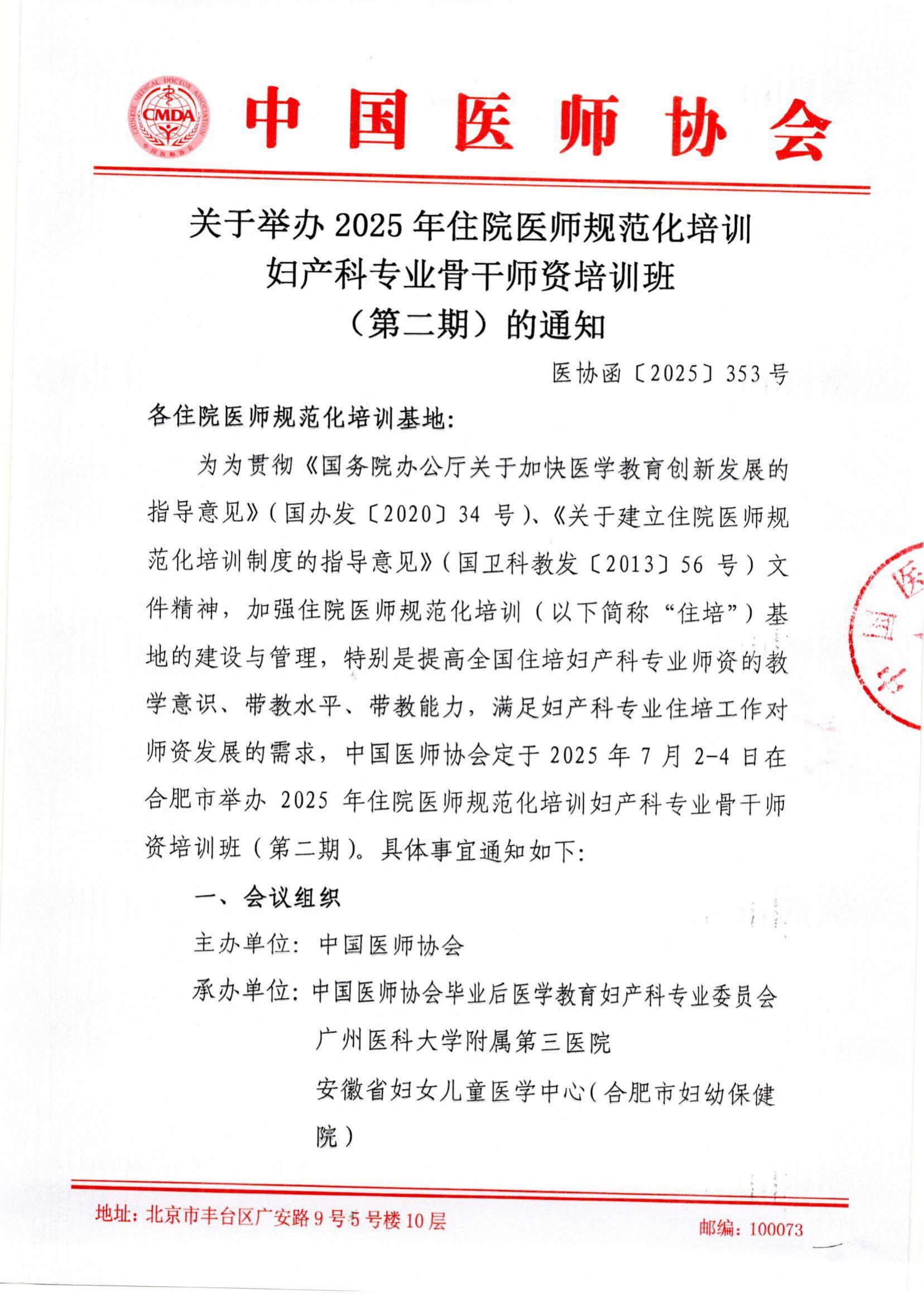 2025年住院医师规范化培训妇产科专业骨干师资培训班