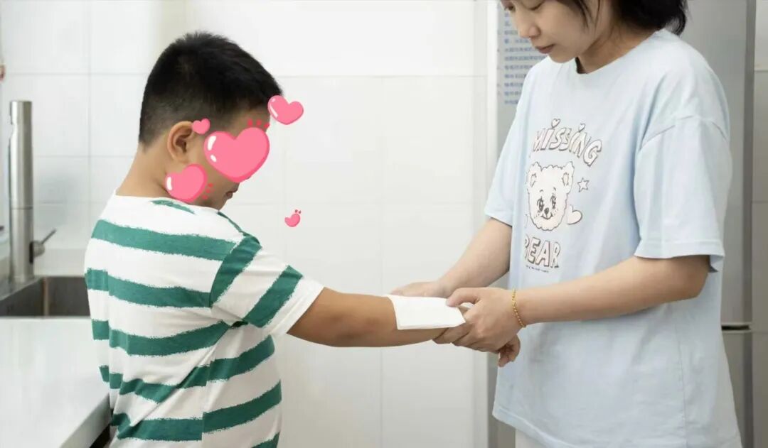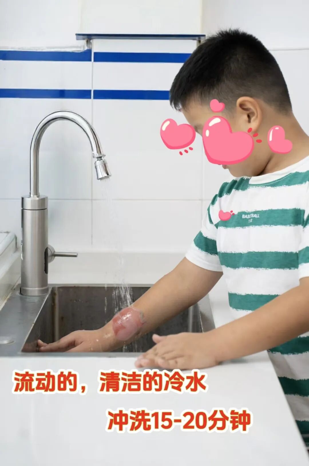o 注意:如果烫伤面积过大(超过孩子体表面积的10%,约等于一个手掌大小),则不建议长时间浸泡,以免导致体温过低,引发休克。此时应采用“冲”和“盖”的方式,并立即送医。