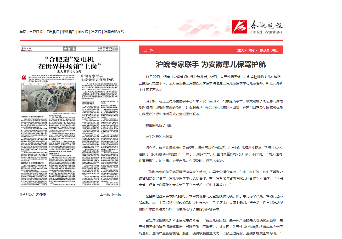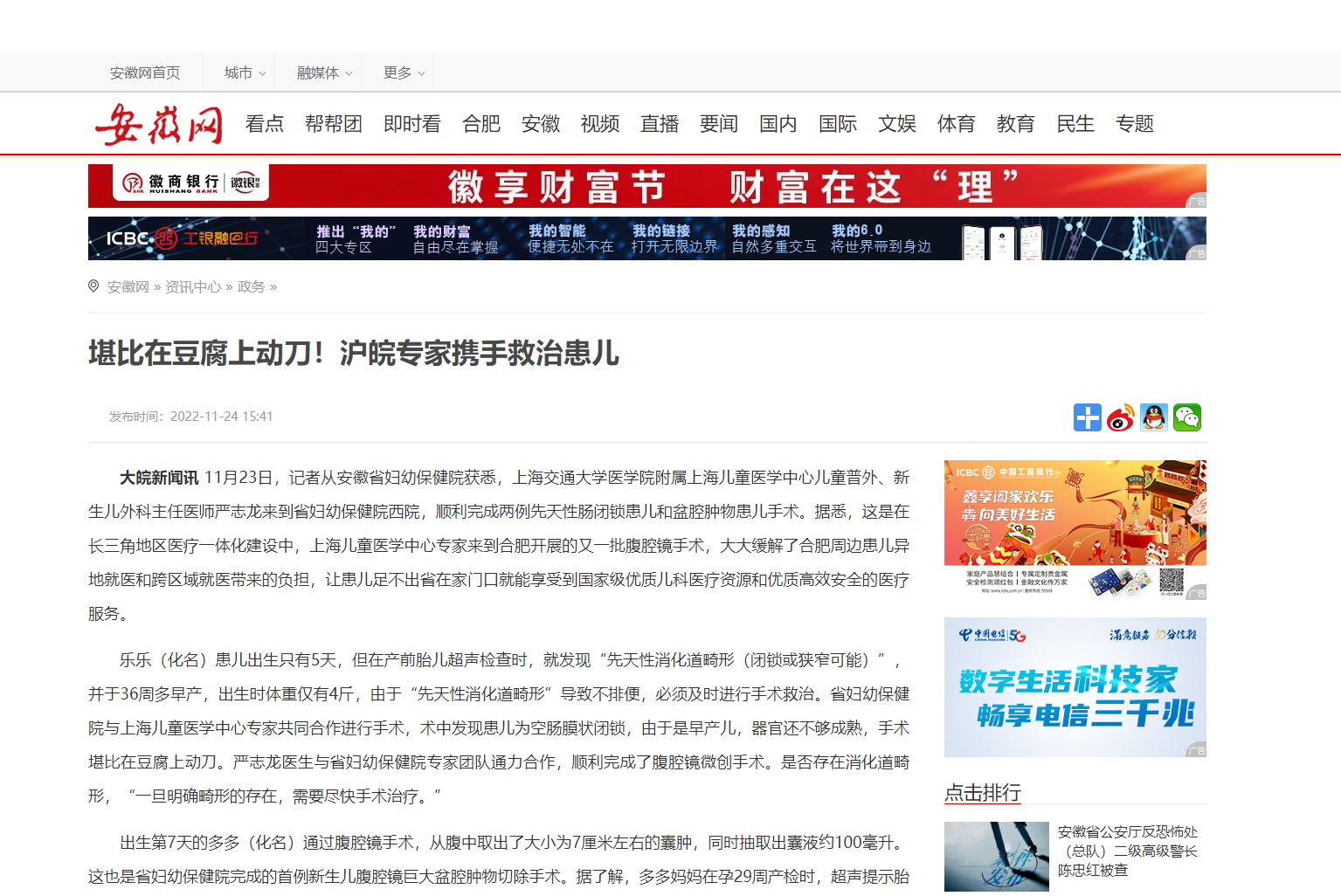 沪皖专家携手打通“生命通道” 上海儿童医学中心专家来皖成功开展首批心脏外科手术;安徽省妇幼保健院扎实推进长三角卫生健康一体化